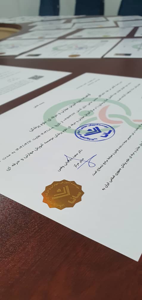 در پایان دوره، شرکتکنندگان مدرک معتبر از وزارت بهداشت، درمان و آموزش پزشکی دریافت خواهند کرد و آمادهی ورود به مراکز درمانی، کلینیکها و بیمارستانها خواهند شد.